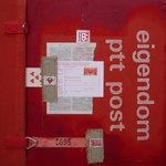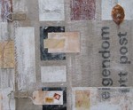 2012Collage with old postbag, dictionary, Dutch stamp and paper. Donation to the art project "Collage around the world" with exhibitions in Brazil.