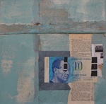 2011Collage with portrait, tickets, maps, stamps, glued on a 3D canvas.